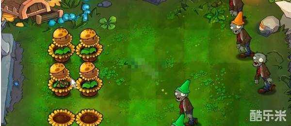 4、后面植物头上可以放点阳光豆,前面继续放汉堡射手。