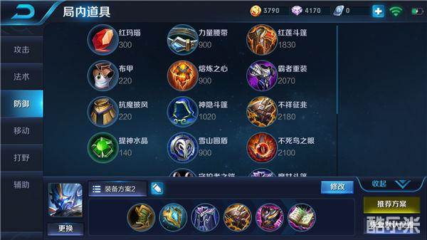 解析:在逆风局中,钟馗扮演的角色和任务也需要做出一定的改变,首先他需要承担起更多的前排抗压,因此前期装备推荐选择影忍之足和极寒风暴;到了中期,他需要继续补充双抗,做出魔女斗篷和不祥征兆让他打先手时更加从容;最后选择暴烈之甲和贤者之书的组合,一方面保证他的坦度和灵活性,另一方面增强他的抗压能力,让他对脆皮英雄也有明显的输出优势。