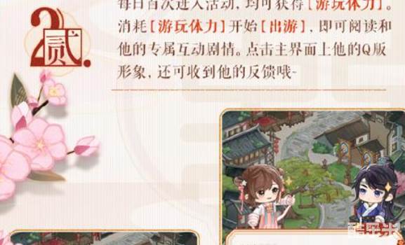 1、在活动期间和心仪的他来到如意镇后,消耗游玩体力即可开始出游。