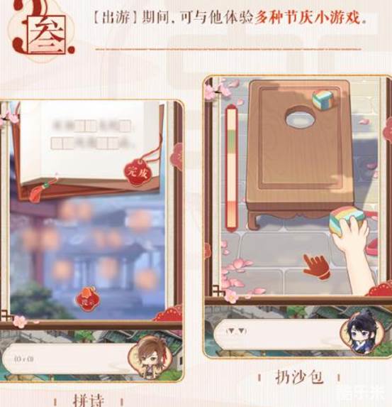 1、在出游期间,可以体验含投壶、扔沙包、射靶、踢花毽、拼诗、猜灯谜、解机关在内的7种小游戏。
