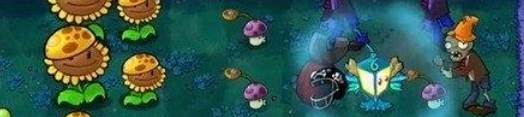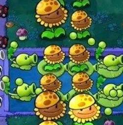 2、先在左侧种植三个阳光向日葵,在中间种植三个小喷菇投手。