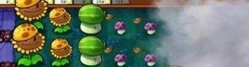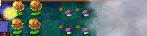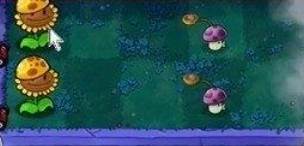 2、在左侧种植两个阳光向日葵,在中间种植两个小喷菇投手。