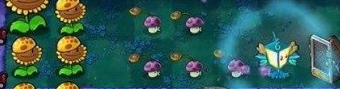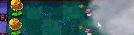 2、先在左侧种植三个阳光向日葵,在中间种植两个小喷菇投手。