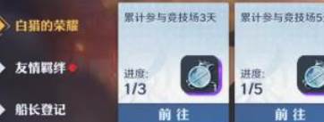 2、进入到活动页面即可看到白猎的荣耀多项活动任务,点击前往竞技场挑战。