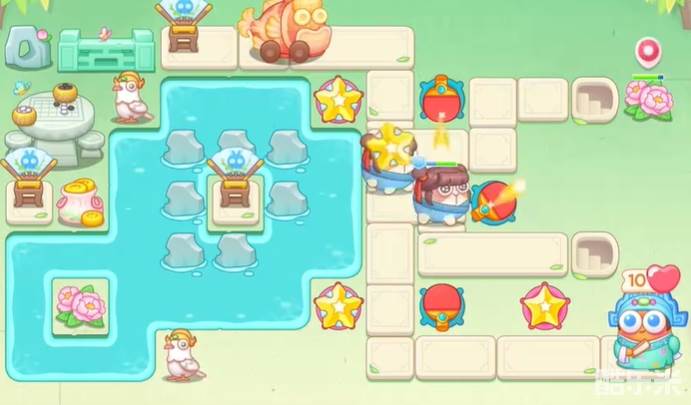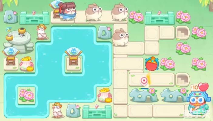 保卫萝卜4梁波波与祝秋秋第48关卡的挑战有一定的难度,左侧有大面积的水池,怪物从左边出现,通过传送口快速抵达右侧,如果不快速建造伤害防线,很容易就会被怪物袭击,前期可以在右侧建立伤害防线,那么第48的通关流程是什么呢?下面和酷乐米小编一起来看看吧