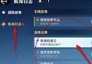 3、进入航海日志后,点击支线任务,可以看到已经完成的任务,点击右侧的领取;