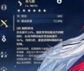 1、珂莱塔武器满级属性为500基础攻击力和72%暴击伤害。