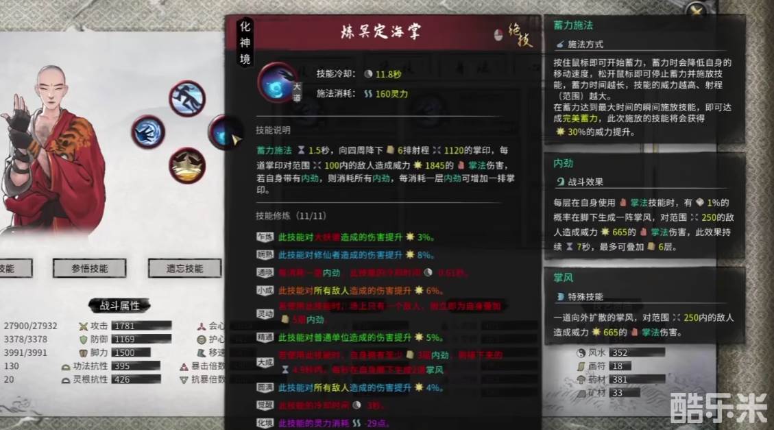 不止如此,清涛掌也是掌法流派当中唯一一个aoe技能,在游戏前期,能够发挥出比较强的输出效果,在功法选择上面,修炼掌法的玩家,则应该提升自己的内伤伤害以及体力上限,内伤伤害是所有掌法技能当中的基础转化比属性值。