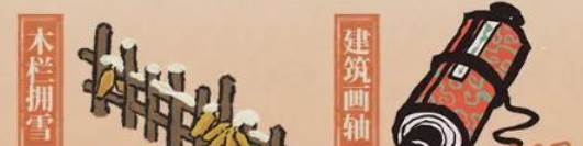 2、前往「州府-公告-告示」对应页面免费领取「金画轴*1」、「建筑画轴*1」、建筑装饰「木栏拥雪*4」、「新宅百宝箱*1」。