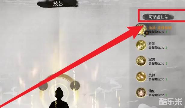 然后在这一个界面的右侧就会有一个专门的区域,主要就是装备仙法。每一个不同的选择特点都会有所区别,例如有一些是群体攻击,可以在短时间内伤害多个敌人,有一些则属于高爆发,可以针对强大的单个敌人,玩家可以根据个人的喜好做出选择。