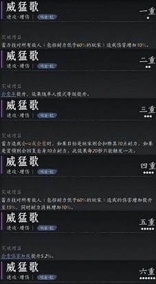 1、威猛歌是陌刀的核心心法,所有升级属性都是蓄力和会意伤害,非常适合陌刀。