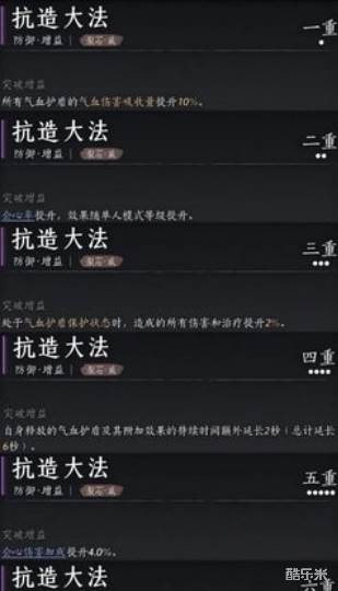 2、抗造可以生成持续4秒的气血护盾,降低受到的伤害并减少药品消耗,其突破属性也与增伤相关。
