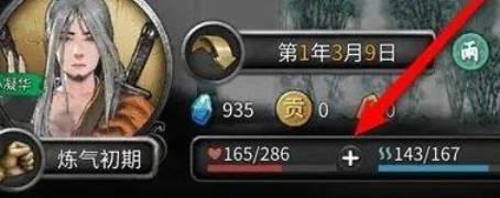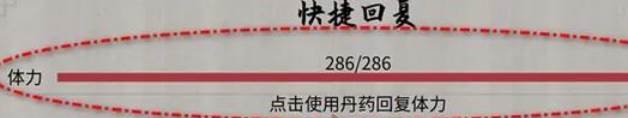 2、接着在血量进度条中,使用快捷回复的丹药进行服用;