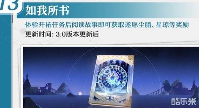 如我所书是崩坏星穹铁道更新3.0版本上线的活动玩法,在活动期间可体验开拓任务,阅读故事即可获得大量奖励,这个活动的奖励也将不定期的扩充,玩家们可以在活动开启后,前往活动页面参与解锁玩法,下面和酷乐米小编一起来看看吧