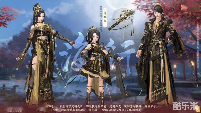 暮色四合,如浓墨重彩泼于绢帛之上。成男款衣着豪迈大气,一身玄色劲装,绣以金龙腾云图案,威风凛凛。宽袍大袖,颇具盛唐气概,领口处饰以毛绒,更显其英武之气。成女款裙裾摇曳,如同盛开的墨莲,金线勾勒的山水云纹在其上蜿蜒,流光溢彩。肩披轻纱,如雾气般笼罩,又轻薄如蝉翼,盈盈欲坠。萝莉款裙摆轻盈,翩跹如蝶翼,似有暗香浮动。腰间以束带紧拢,更显其娉婷身姿。