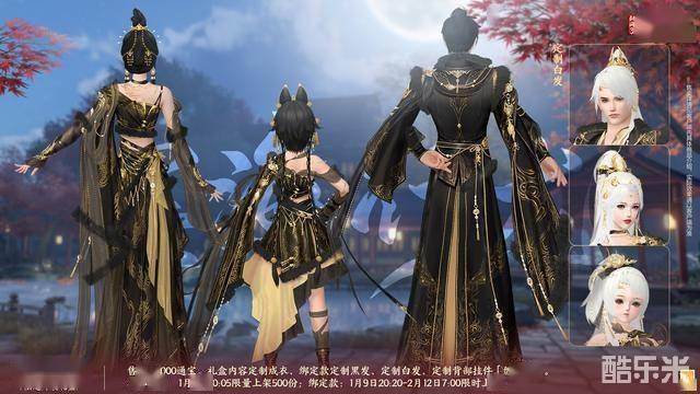 礼盒内含定制成衣、绑定款定制黑发、定制白发、定制背部挂件「缠枝影」,售价52,000通宝,