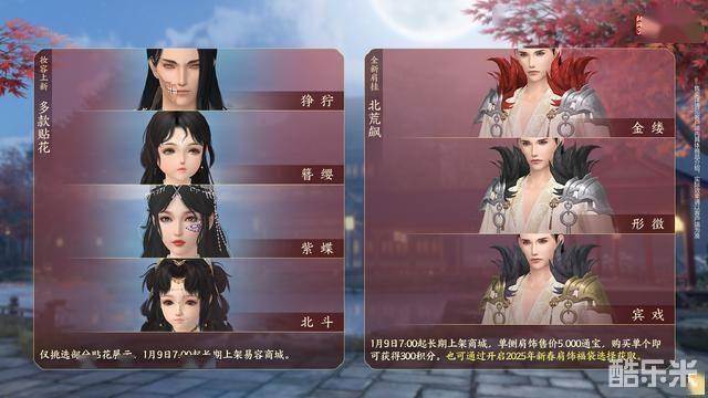 1月9日7:00起长期上架商城,单侧肩饰售价5,000通宝,购买单个即可获得300积分,也可通过开启2025年新春肩饰福袋选择获取。