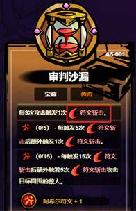 就像宝藏-审判沙漏,可以通过攻击次数出发符文斩击,使用这个宝藏的话,那就需要准备攻速快的武器。
