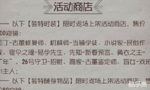 第五人格游戏中随着2025年春节的到来,不仅带来了新春福利活动,还有限时返场,包含精美时装和限定动作,那么25年春节的返场时装和动作都有什么呢?下面和酷乐米小编一起来看看吧