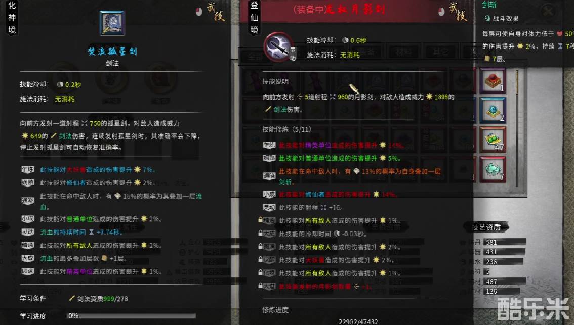 如果玩家想要更短的CD以及更长的射程,可以选择孤星剑,但孤星剑的准星比较不稳定,很可能会偏移,如果玩家使用的是剑灵流派,那么则可以使用增幅剑灵输出效果的武技,例如剑灵精通等等,这个武技可以增加玩家剑灵清除小怪的效率。