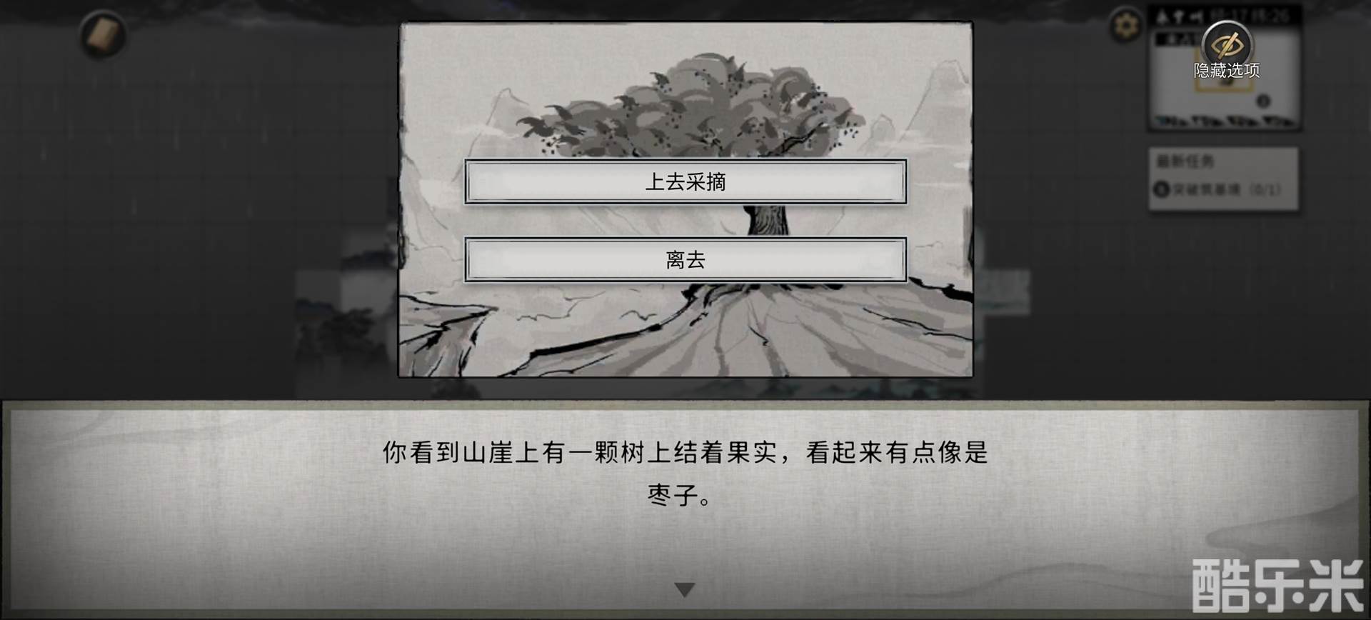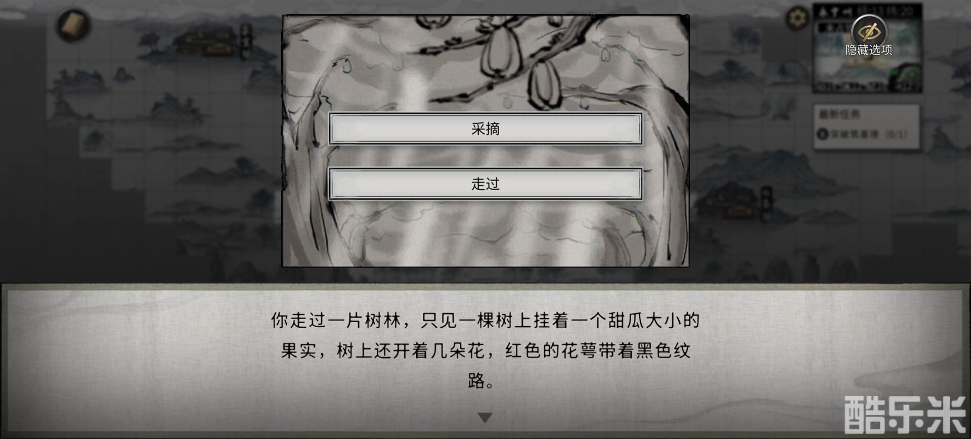 (1)你非常幸运,果实突然从树上掉下来,正好掉在你的背包里(体力上限+10)