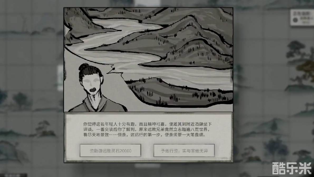 在得到信息后,玩家就可以前往到华封州的野外进行游历,游历期间,玩家就会看到一个健谈的年轻人,当触发了上述内容后,则代表玩家的奇遇任务已经触发,奇遇的主角是一个背负着行囊决定游历四五湖四海的青年,他会要求玩家资助他,此次建议玩家直接选择资助。