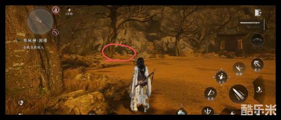 煞地神起手会钻地红光,我们可以在左边树附近卸势他的红光;