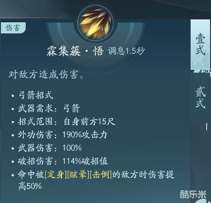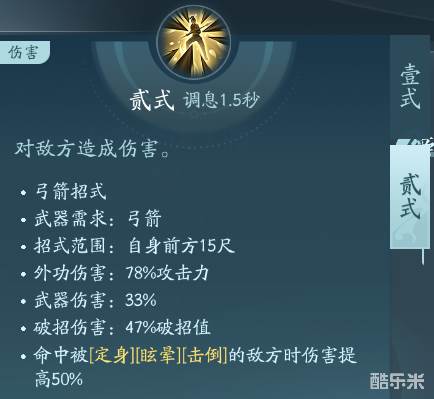 是个范围伤害,第一击射中后也会增伤15%。PVP点绝篇,PVE点秘章。