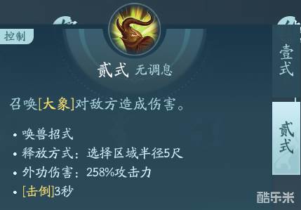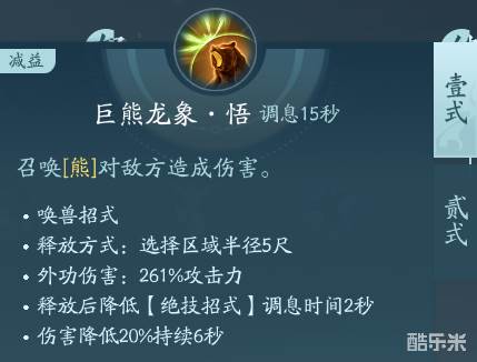 召唤技能,一段召唤出一头熊,二段召唤出一头大象。PVP点秘章封内,PVE点绝篇增伤。