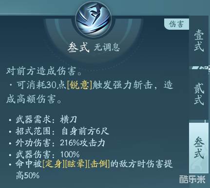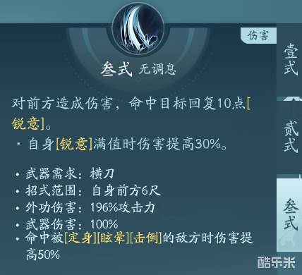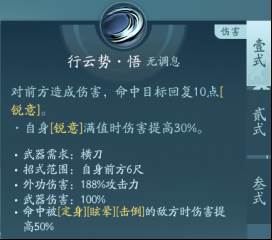 虽然是普攻,但是是范围群伤,伤害很猛。PVP点秘章回血,PVE点绝篇,尽量在满锐意的时候打出行云势叁,又有增伤,又能减少技能cd。