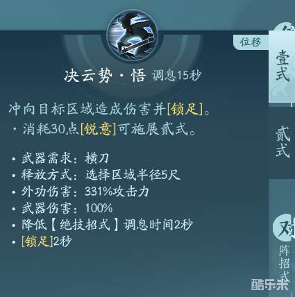 移动端刀宗的门派轻功并且可以解控,技能有两段,需要好好利用看准时机释放。