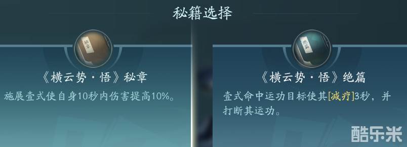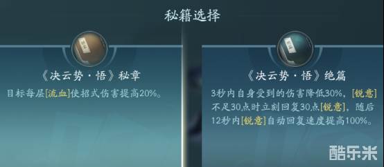 决云势自带免控且伤害也不错,使用后还可以减少绝技招式。PVP和PVE都可以点秘章增伤,绝篇比较适合PVP按照技能奇穴的阵容搭配来点。