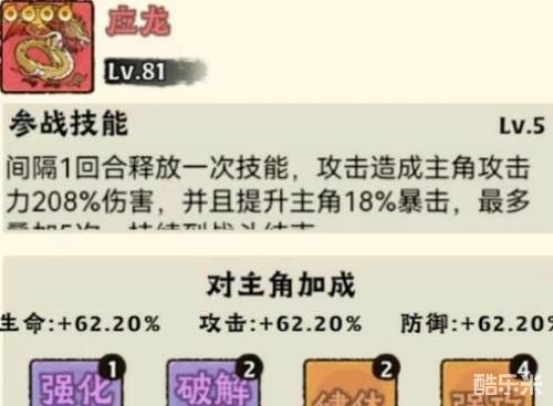 麒麟能够直接增加5层绝技的伤害,也就是提升了整整1倍的伤害,只要暴击,一般都是能够造成秒杀的。