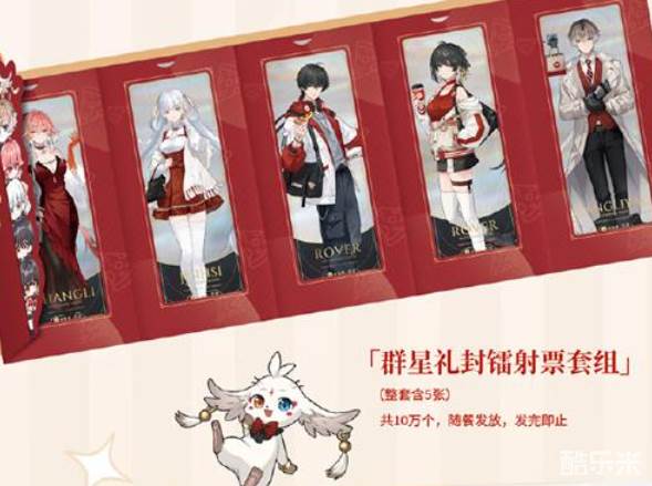 2、联动主题周边是群星礼封镭射票套组,整套包含5张;
