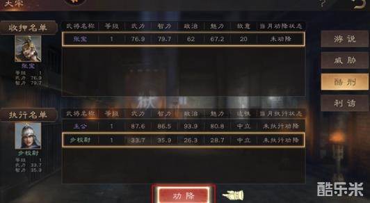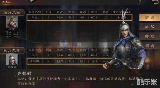 3、在收押名单中挑选武力强且智力高的武将,进行游说。