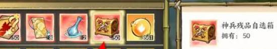 4、即可使用神兵残品自选箱来获取对应的残品道具了;