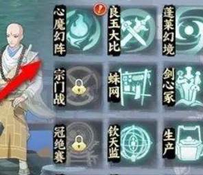 2、前往心魔幻阵页面后,点击右下角的心魔锦囊按钮;