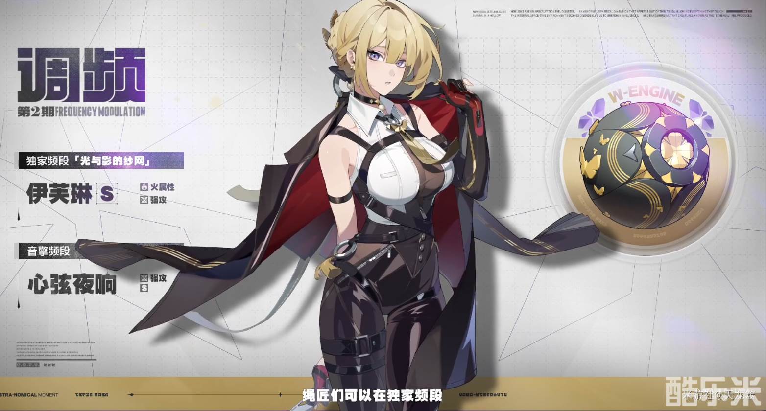 1、上半卡池登场的新角色是耀嘉音,和艾莲同步进入卡池;