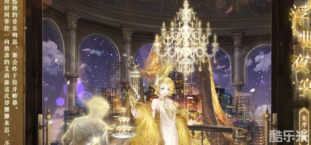【浮世夜宴】含全新妆容“命运眷属”,动态特姿连衣裙“浮世夜宴”、“浮世华宴”,动态发型“金色时代”,动态头饰“琥珀低语”、“金翎迷梦”,动态摆件“夜宴掠影”、“华灯璀璨”、“都市霓虹”,精美可移动摆件“荣耀之阶”。