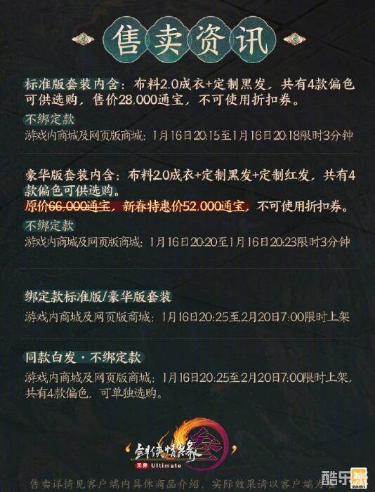 3、标准版售价28000通宝,豪华版特惠价格52000通宝,都不可使用折扣券。