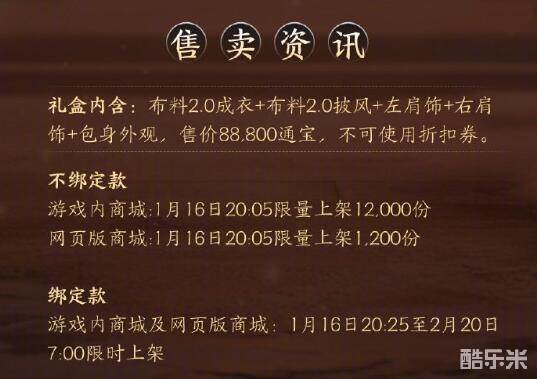 不绑定款:2025年1月16日20:05限量12.000份(网页版商城限量上架1200份)
