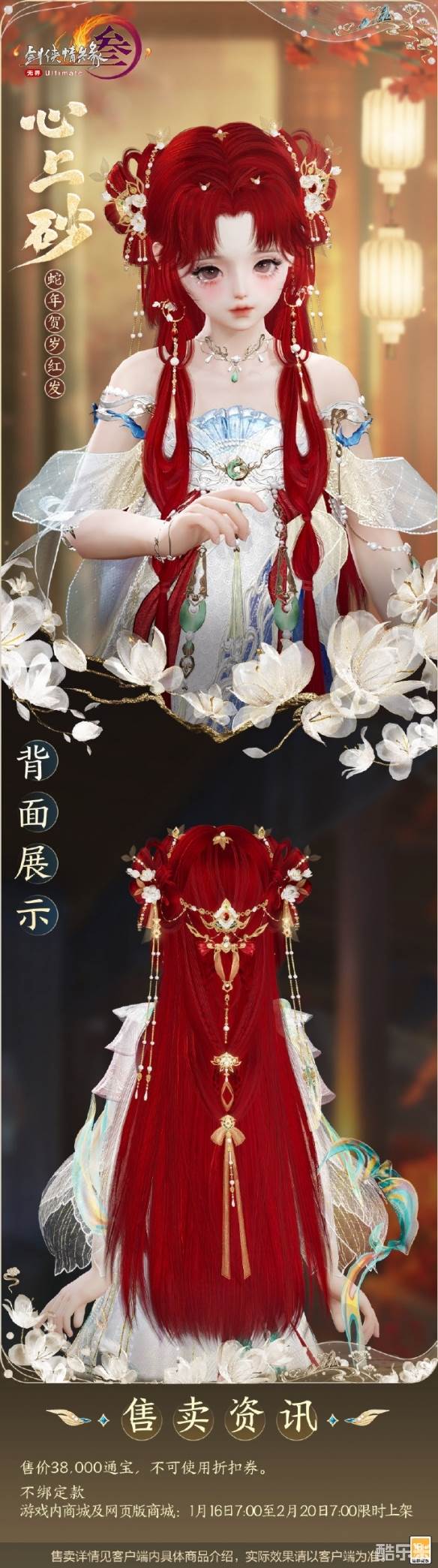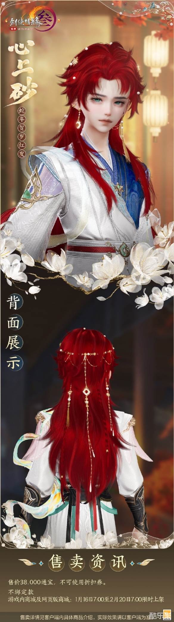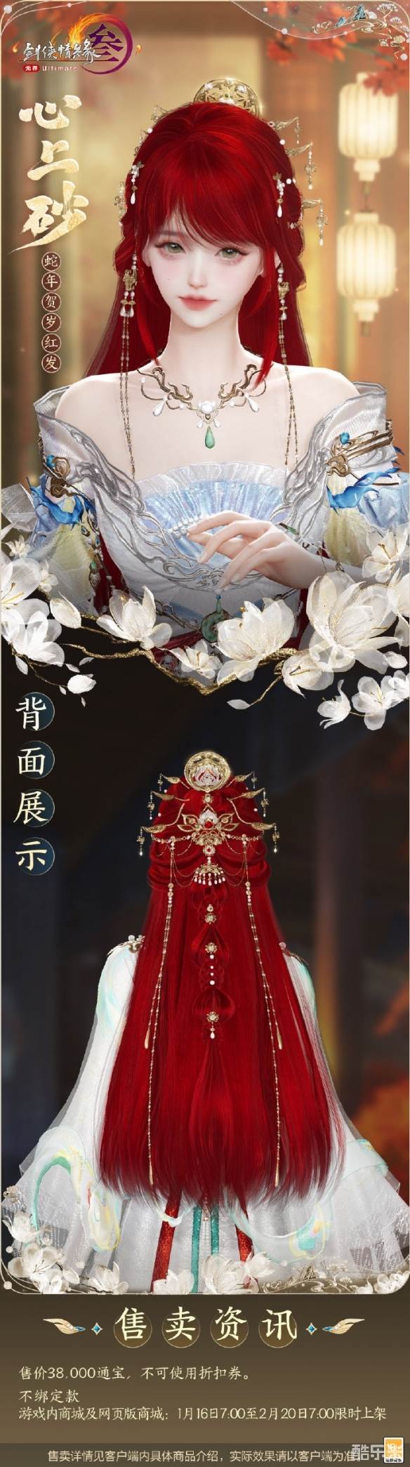 心上砂为2025新春红发,很多玩家想知道心上砂外观长什么样,心上砂发型颜色为红色,发型配饰为金色,外观售价38.000通宝且不支持使用折扣券,下面和酷乐米小编一起来看看吧