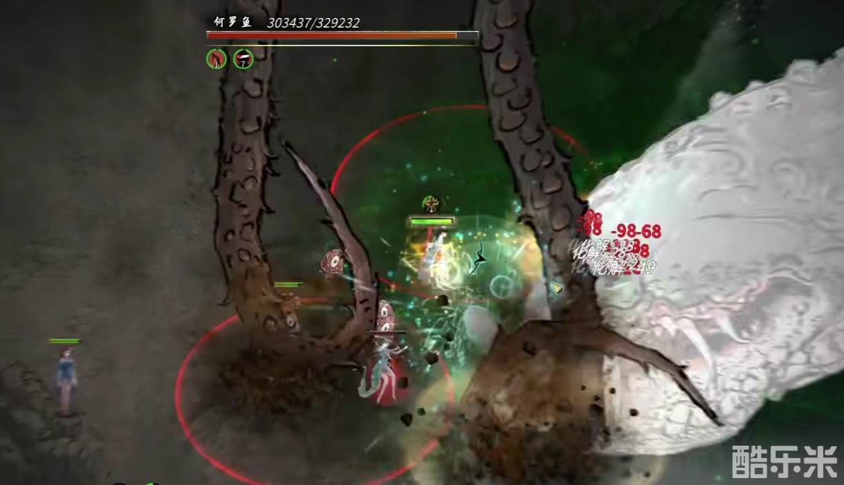 何罗鱼总共有三个技能,第一个技能为触手攻击,当何罗鱼释放该技能时,就能够对在场全屏的所有目标造成aoe伤害,在伤害释放的期间,何罗鱼还会召唤小怪辅助,地面的裂痕当中,不仅会出现陷阱,也会蔓延出大量的小怪,这些小怪都是需要玩家及时清理的,否则会酿成大祸。