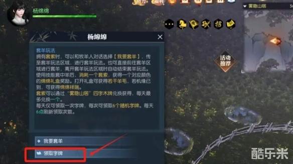 绵羊毛毛可用来兑换坐骑,很多玩家都想知道绵羊毛毛怎么获得,进入雾隐山居(570.685),对话【杨绵绵】选择【套羊】开始套羊游戏套中即可获得【绵绵羊毛】,下面和酷乐米小编一起来看看吧