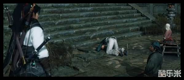 1、跳下去后往北走需要过了小河后去看看这个殿前的情况。