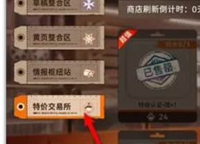 2、接着在商店中,找到特价交易所商店,点击右上角的刷新按钮;