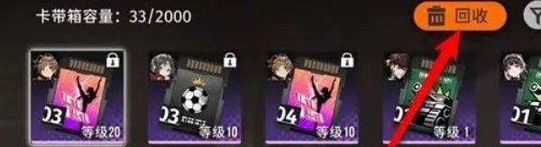 2、接着在背包页面,点击右上角的回收,选择卡带进行回收;