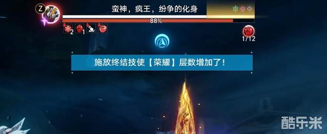答:在和「蛮神,疯王,纷争的化身」的单场战斗中,所有我方角色的【荣耀】达到2层上限