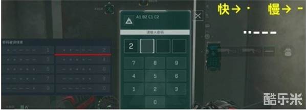 3、先听完整的,第一个是两快一慢,对应密码2。