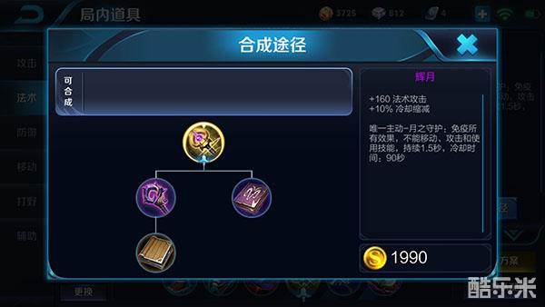 分析:辉月是目前最适合脆皮法师的生存装备,此装备不仅能提高张良的技能释放频率和技能伤害,而且主动释放月之守护能帮助他躲避敌人的关键技能或者控制手段。玩家可以在中后期做出辉月,一方面提高自身的进攻性,另一方面防止被敌方刺客强杀。